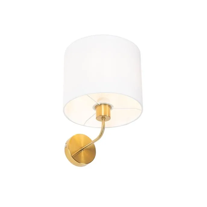 Klassieke wandlamp goud stoffen kap wit – Cas