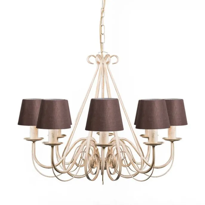 Kroonluchter beige 60 cm met bruine klemkappen – Giuseppe