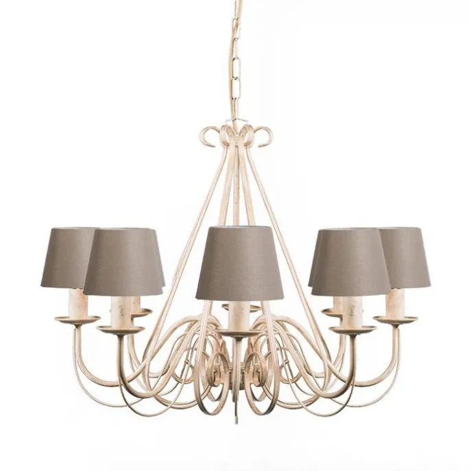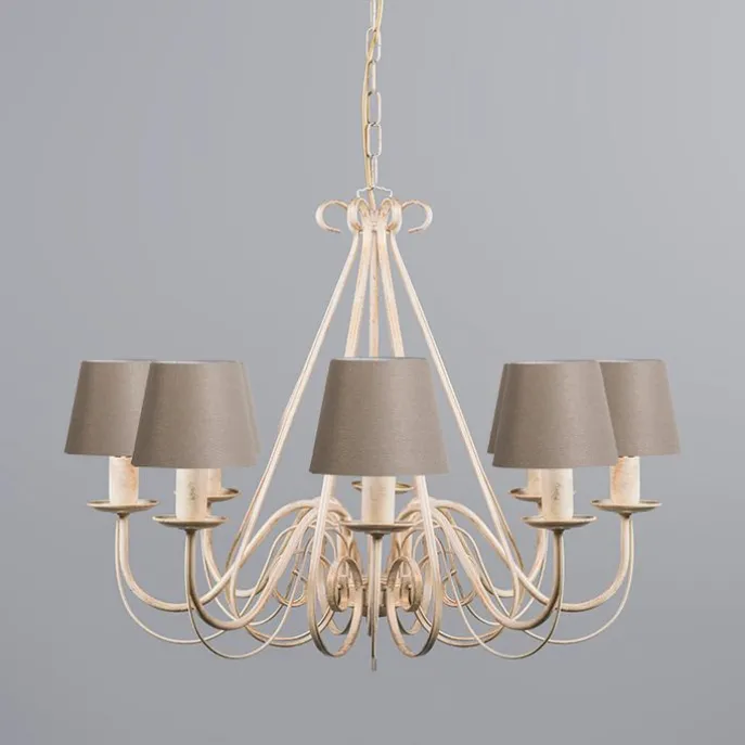 Kroonluchter crème 60 cm met taupe klemkappen – Giuseppe