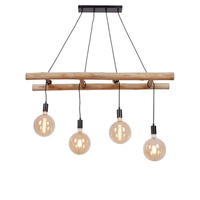 Landelijk hanglamp hout 4-lichts – Scala
