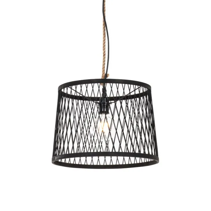 Landelijke buiten hanglamp zwart rotan 40 cm – Calamus