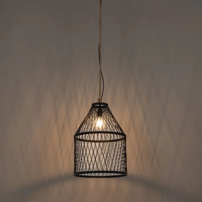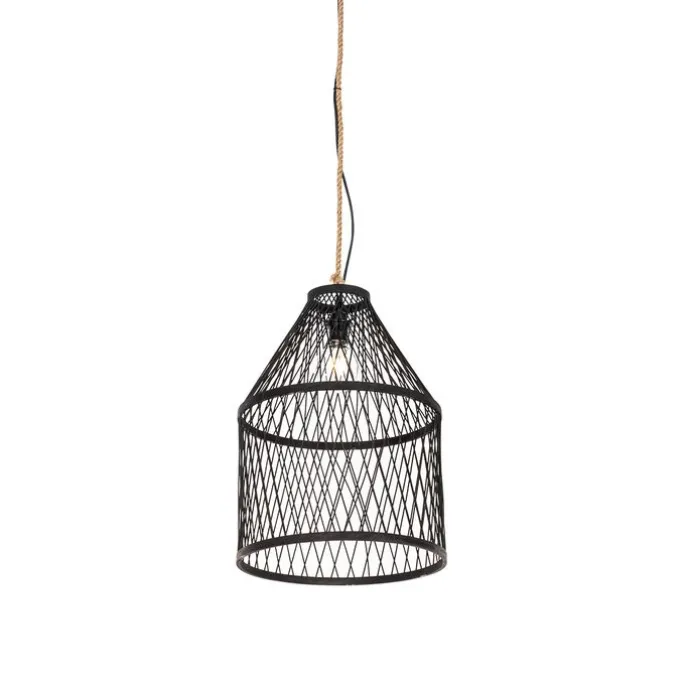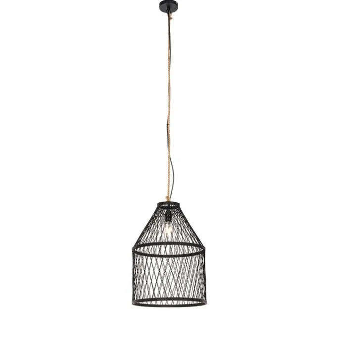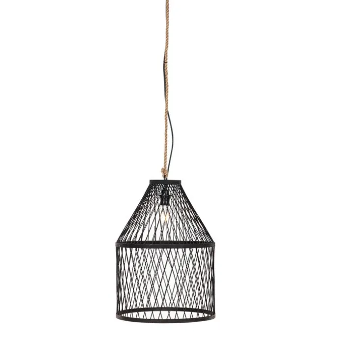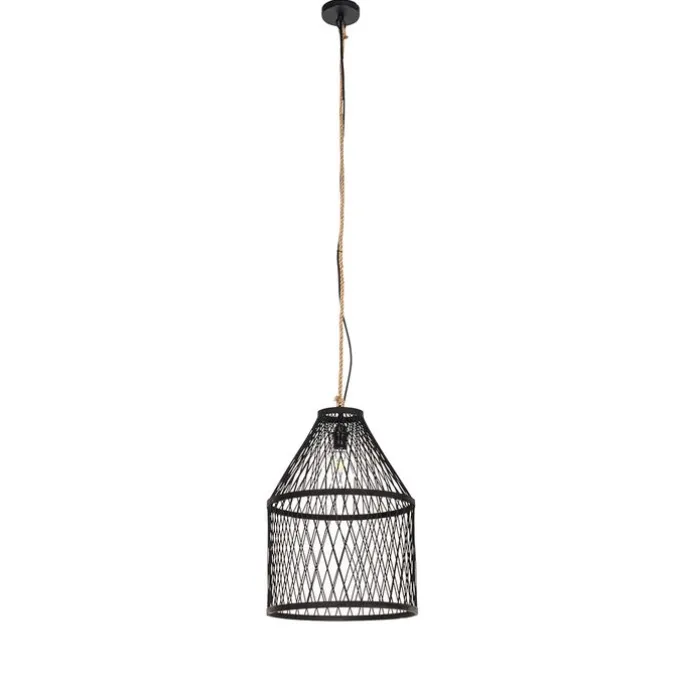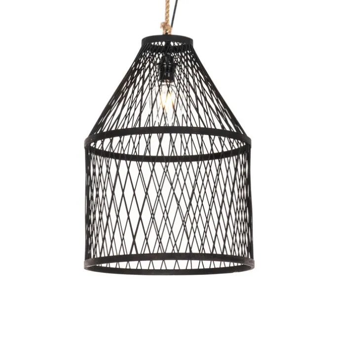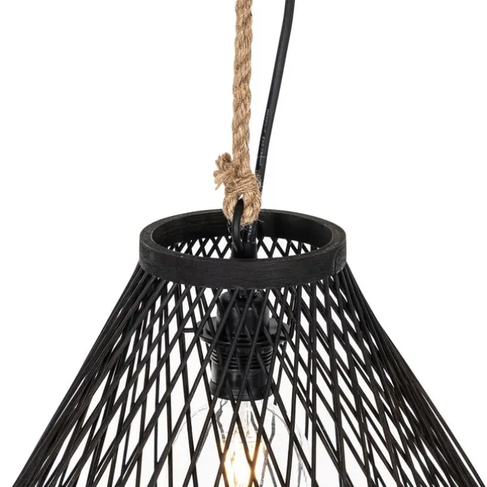 Landelijke buiten hanglamp zwart rotan 40×55 cm – Calamus