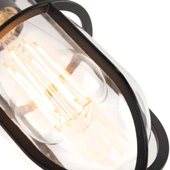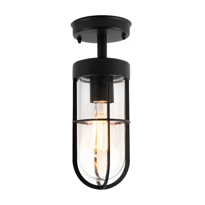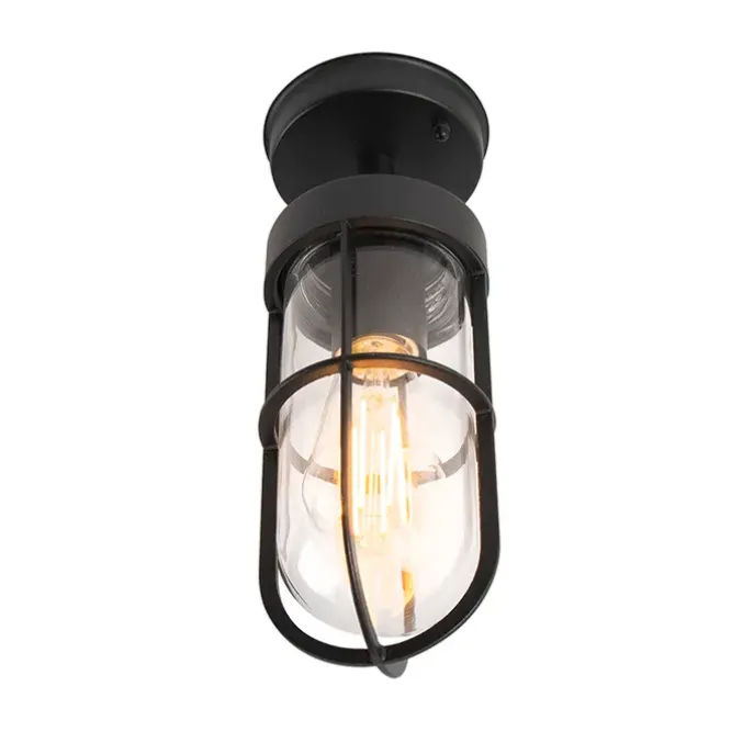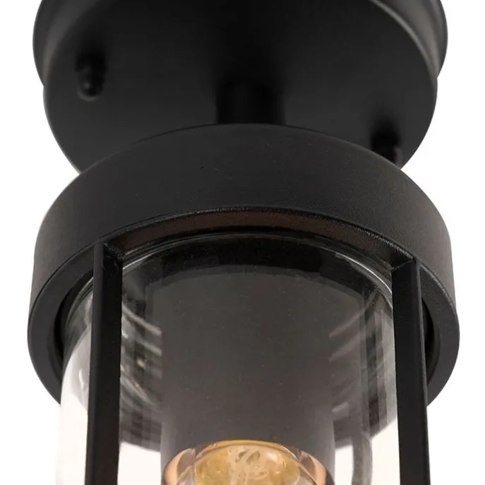 Landelijke buitenplafondlamp zwart met glas IP44 – Elza