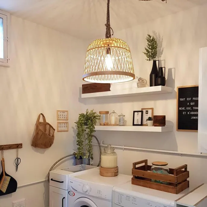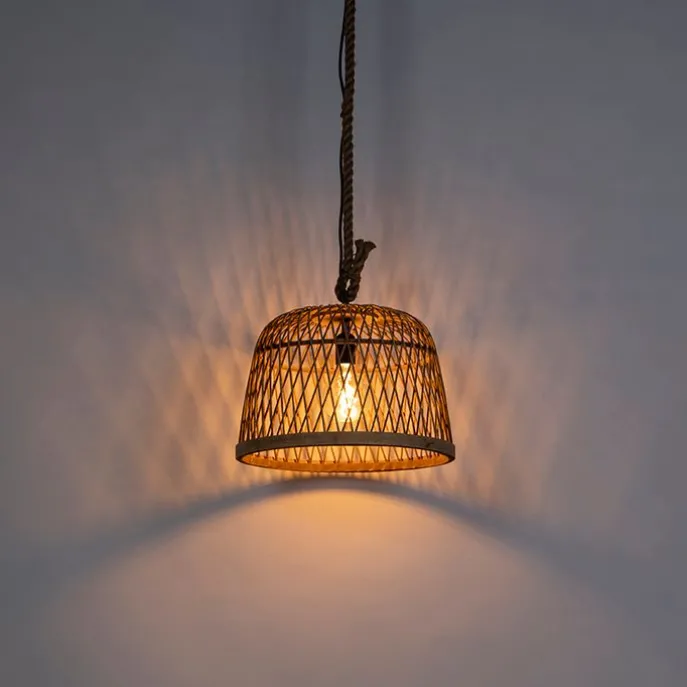 Landelijke hanglamp touw met rotan – Calamus