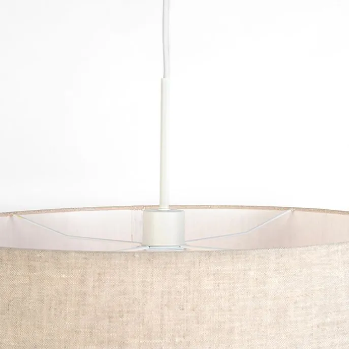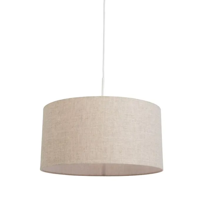 Landelijke hanglamp wit met katoenen kap lichtgrijs 50 cm – Combi