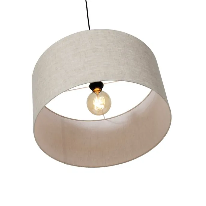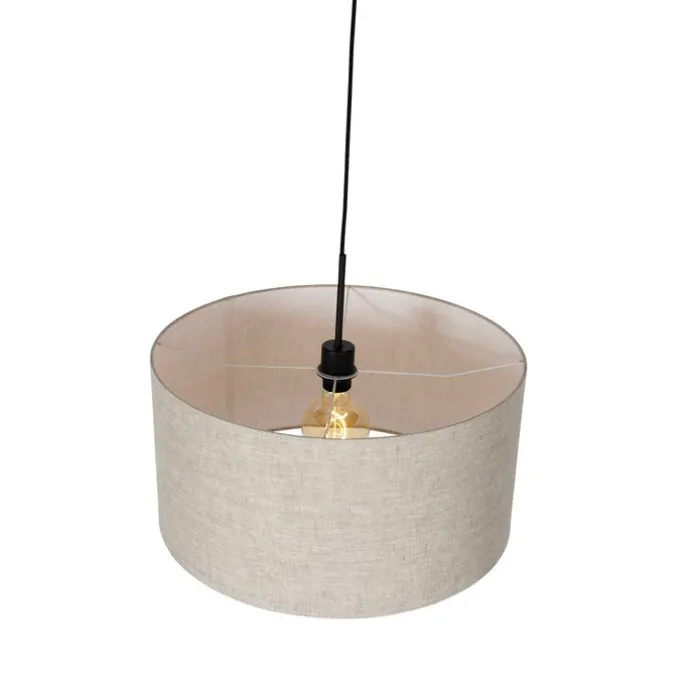 Landelijke hanglamp zwart met beige kap 50 cm – Combi 1