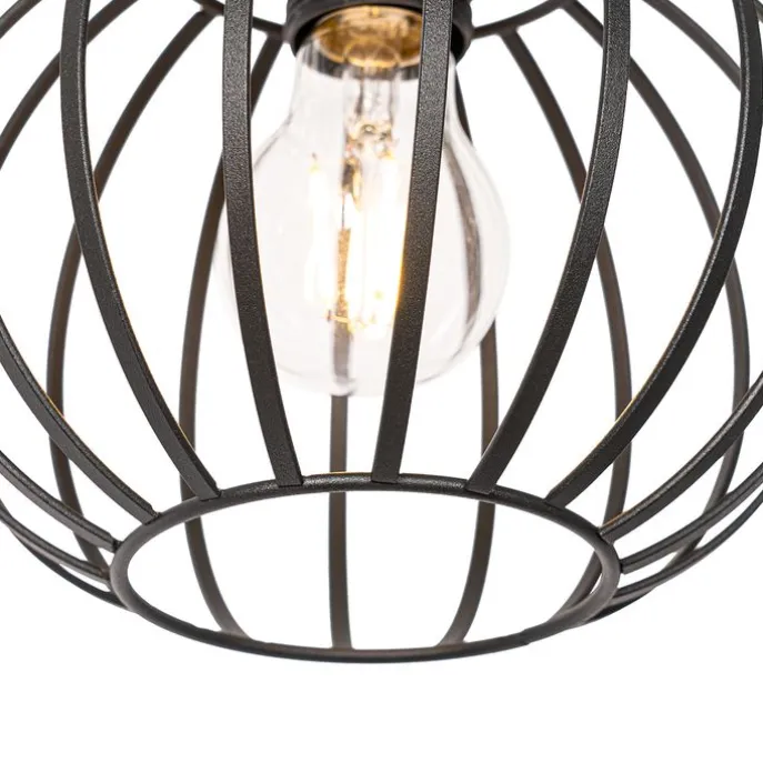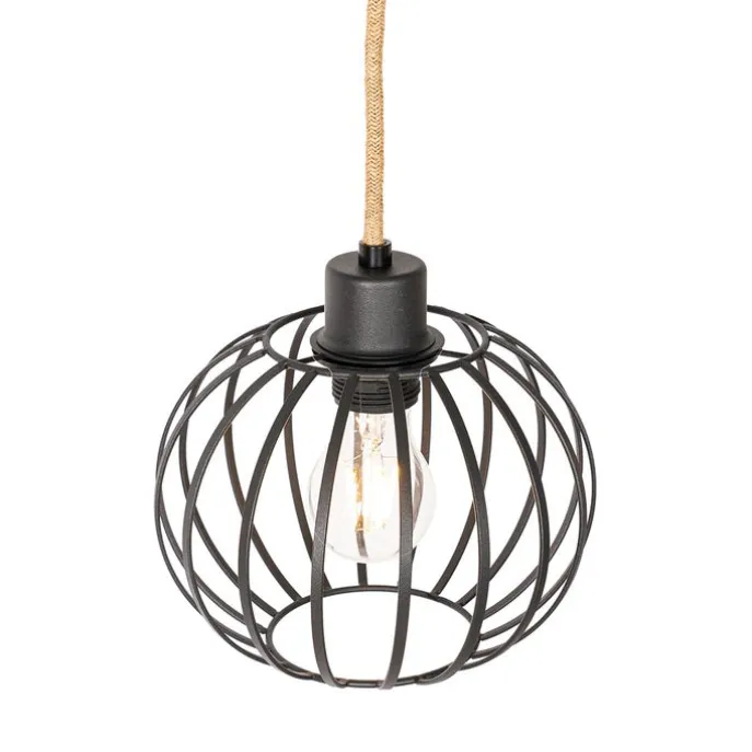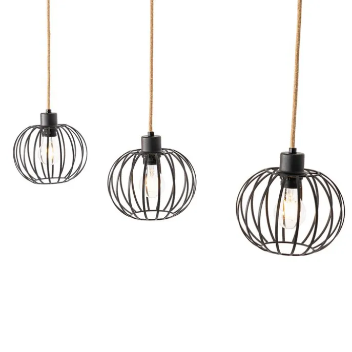 Landelijke hanglamp zwart met hout 3-lichts – Yura