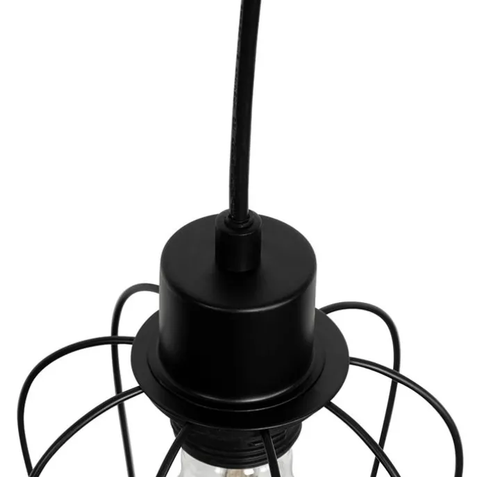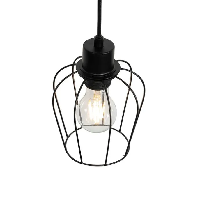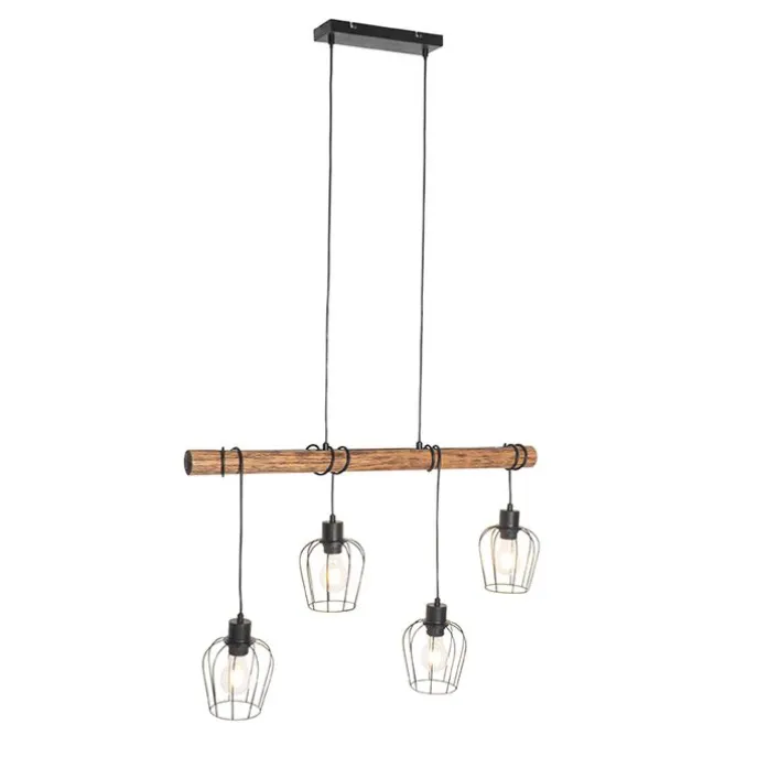Landelijke hanglamp zwart met hout 4-lichts – Stronk