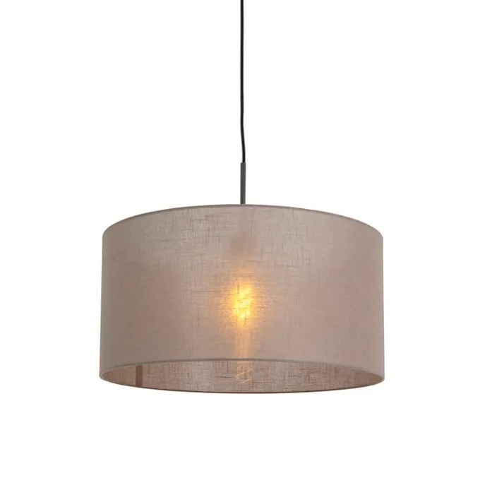 Landelijke hanglamp zwart met taupe kap 50 cm – Combi 1
