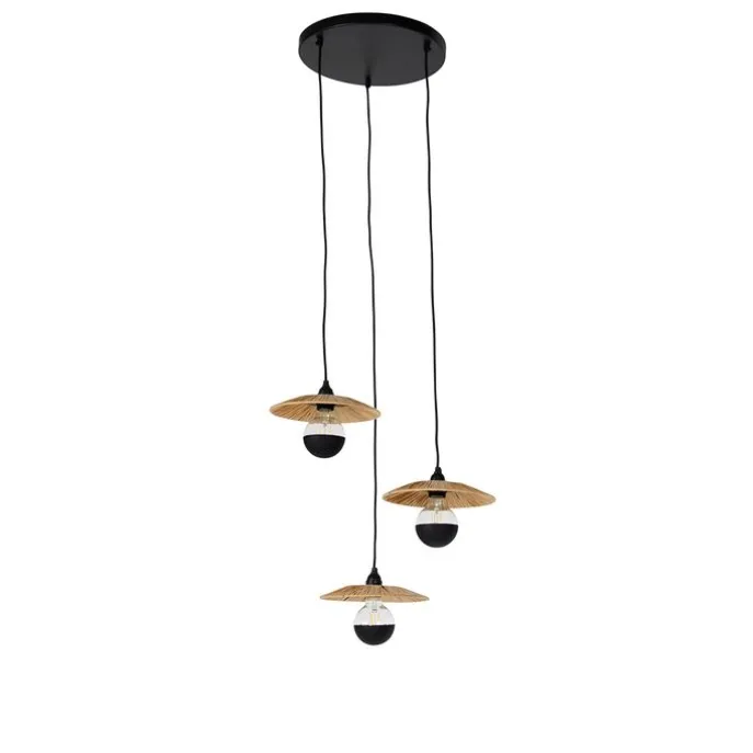 Landelijke hanglamp zwart met touw 3-lichts – Leia