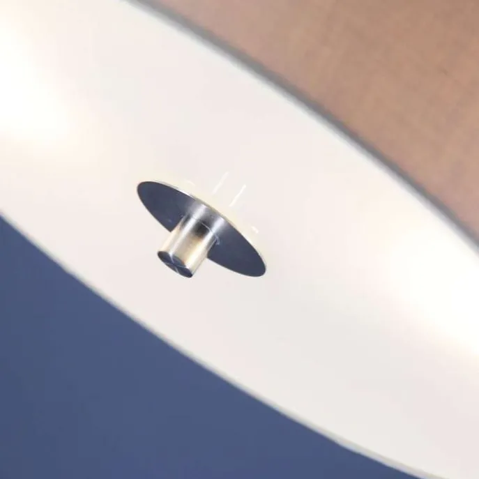 Een tijdloze ronde plafonnière met een kap een mooie beige kleur. De stof die gebruikt is voor de kap is gemaakt van katoen. De plafondlamp Drum is prachtig afgewerkt met een matte glasplaat aan de onderzijde waardoor een rustig lichteffect gecreëerd wordt in huis. De lamp heeft een diameter van 30 cm en een hoogte van 13 cm. De lamp is dimbaar met externe dimmer (dimmer niet inbegrepen). Je maakt je Drum compleet met twee lichtbronnen passend in een E27 fitting (elk max. 40 Watt). Een aangename plafondlamp in elke ruimte in huis!