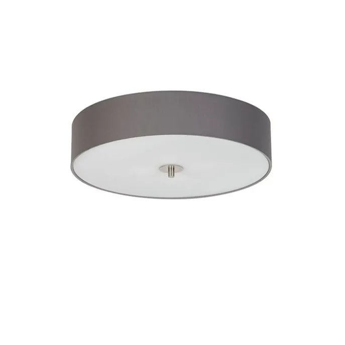 Een tijdloze ronde plafonnière met een kap een mooie donker grijze kleur. De stof die gebruikt is voor de kap is gemaakt van katoen. De plafondlamp Drum is prachtig afgewerkt met een matte glasplaat aan de onderzijde waardoor een rustig lichteffect gecreëerd wordt in huis. De lamp heeft een diameter van 50 cm en een hoogte van 13 cm. De lamp is dimbaar met externe dimmer (dimmer niet inbegrepen). Je maakt je Drum compleet met vier lichtbronnen passend in een E27 fitting (elk max. 40 Watt). Een aangename plafondlamp in elke ruimte in huis!