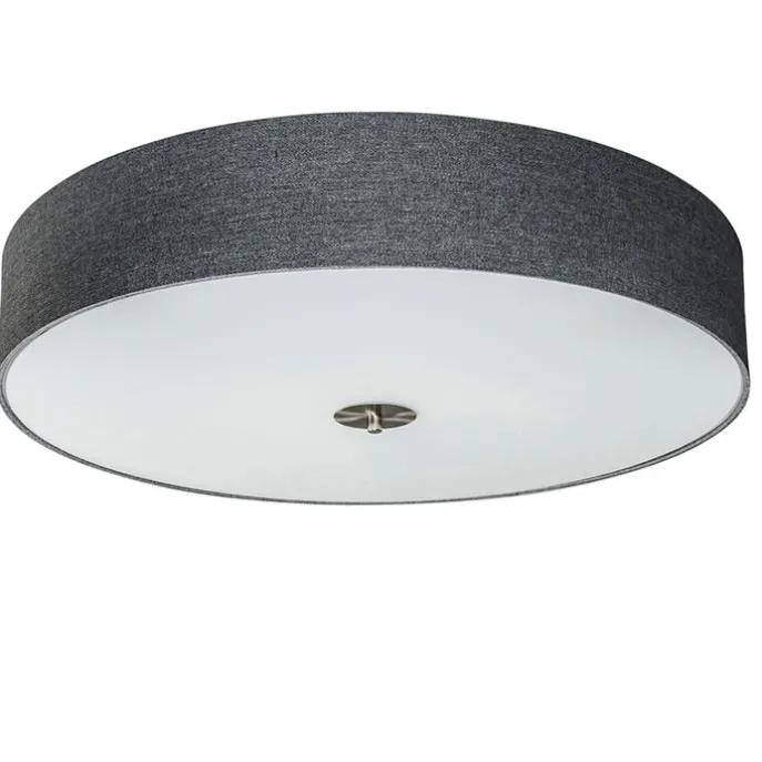 Een tijdloze ronde plafonnière met een kap een mooie grijze kleur. De stof die gebruikt is voor de kap is gemaakt van jute. De plafondlamp Drum Jute is prachtig afgewerkt met een matte glasplaat aan de onderzijde waardoor een rustig lichteffect gecreëerd wordt in huis. De lamp heeft een diameter van 70 cm en een hoogte van 16 cm. De lamp is dimbaar met externe dimmer (dimmer niet inbegrepen). Je maakt je Drum Jute compleet met zes lichtbronnen passend in een E27 fitting (elk max. 40 Watt). Een aangename plafondlamp in elke ruimte in huis!