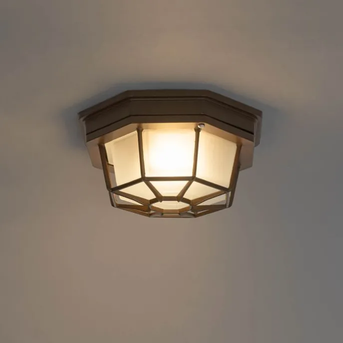 Landelijke plafondlamp roestbruin 21,3 cm IP44 – Bri