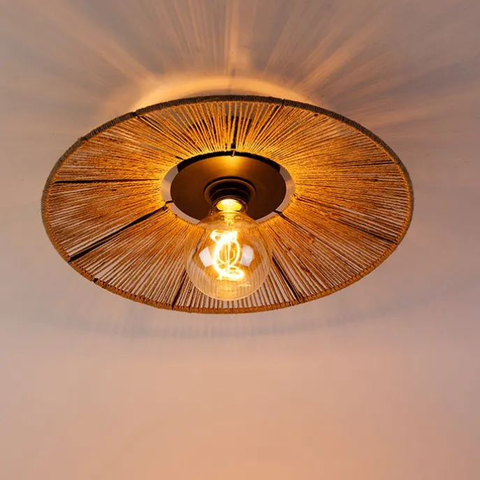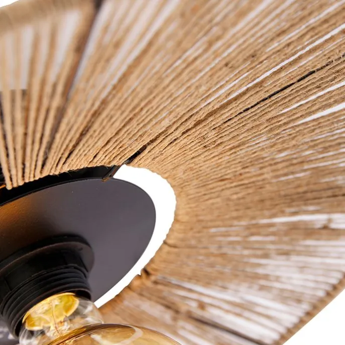 Landelijke plafondlamp zwart met touw – Sacha