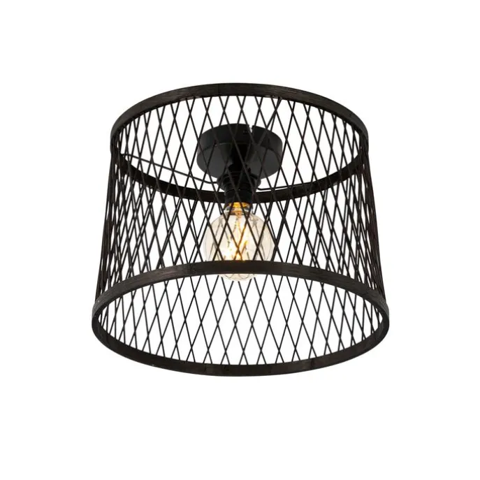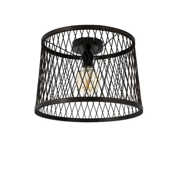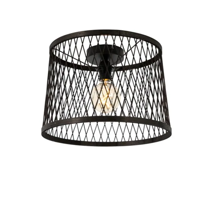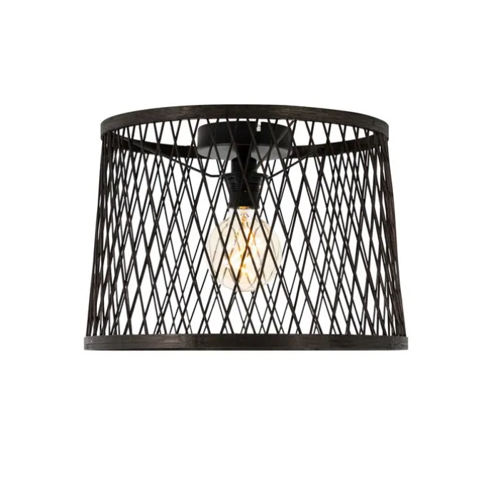 Landelijke plafondlamp zwart rotan 40 cm IP44 – Calamus