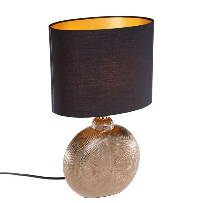 Landelijke tafellamp brons met zwart 39 cm – Kygo