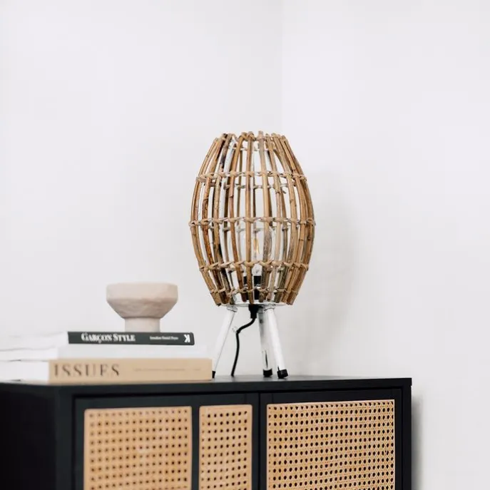 Landelijke tafellamp tripod bamboe met wit – Canna Capsule