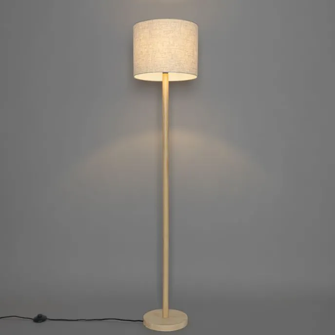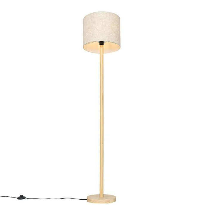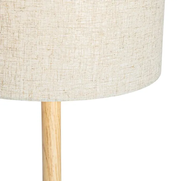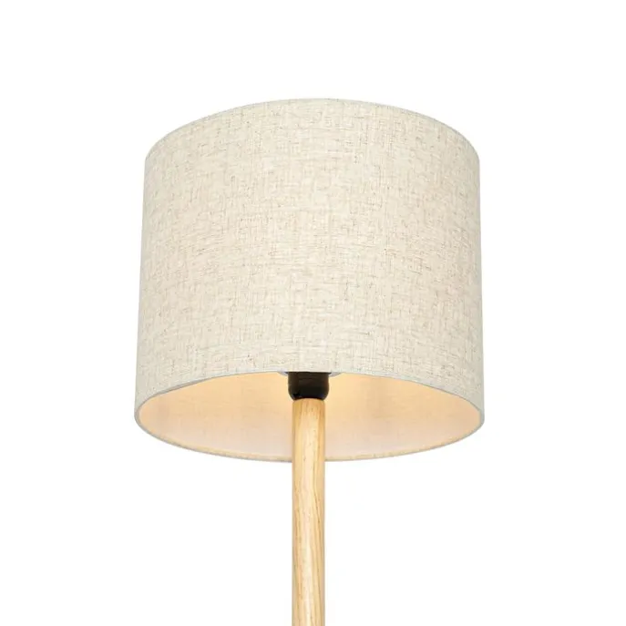 Landelijke vloerlamp hout met linnen kap beige 32 cm – Mels