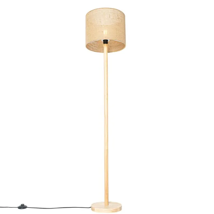 Landelijke vloerlamp hout met linnen kap naturel 32 cm – Mels