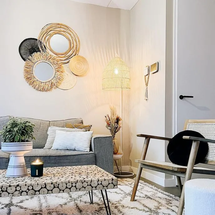 Deze vloerlamp is een mooie toevoeging in een landelijk of romantisch interieur! Hij is uniek afgewerkt met rotan kap en wit armatuur. Een zomerse topper! De hoogte van de lamp is 178 cm en hij heeft een breedte van 40 cm. De voet heeft een diameter van 35 cm. Hij wordt met snoer en stekker geleverd (250 cm lang). Je verkrijgt een gezellige en landelijke sfeer door de rotan open lampenkap. Je maakt onze Sam compleet met een E27 lichtbron van max. 60 Watt. Let op: de lichtbron is niet inbegrepen en moet je nog apart bij bestellen. Je kan de vloerlamp dimmen met een externe dimmer (niet inbegrepen). Maak het gezellig in huis met Sam!