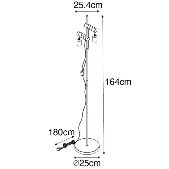 De landelijke vloerlamp Dami is een prettige 2-lichts vloerlamp. Doordat het snoer om het hout heel is gedraaid krijgt hij een speelse uitstraling. De lamp is gemaakt van zwart staal met hout. Hij heeft een hoogte van 164 cm, breedte van 25 en lengte van 25,4 cm. De voet heeft een diameter van 25 cm en een hoogte van 3,5 cm. Dami wordt inclusief snoer (180 cm) en stekker geleverd. Je maakt de vloerlamp af met 2 lichtbronnen die ieder beschikken over een E27 (max. 10 Watt) fitting. Vergeet deze er niet nog bij te bestellen! Ga voor een mooie lichtbron met smoke- of amber glas, daarmee geef je de ruimte een extra sfeervol gevoel. De lamp is dimbaar met een externe dimmer, deze is niet inbegrepen. Geef je interieur een landelijke touch en ga voor de vloerlamp Dami!