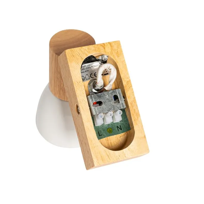 Landelijke wandlamp hout met wit verstelbaar – Thorin