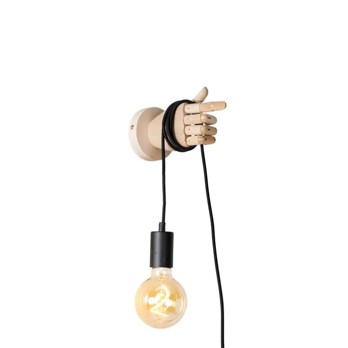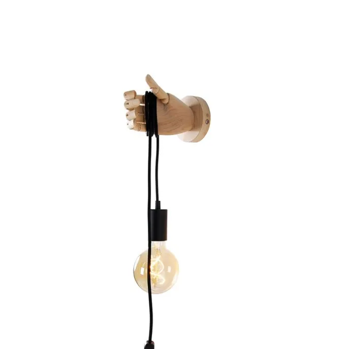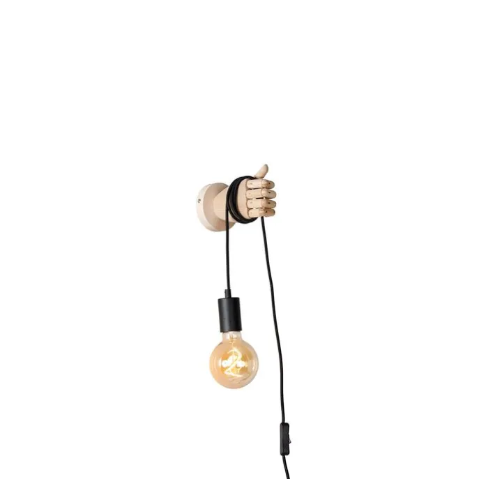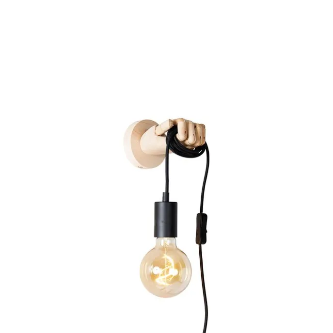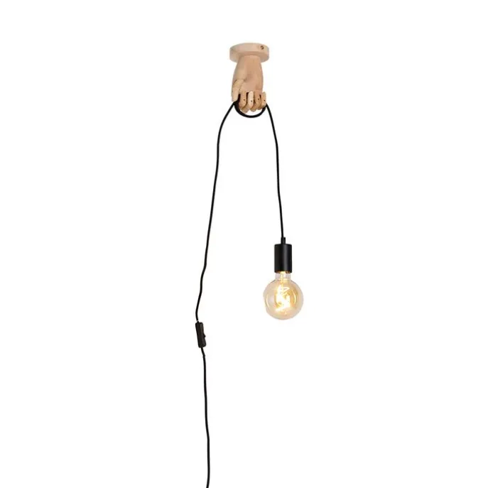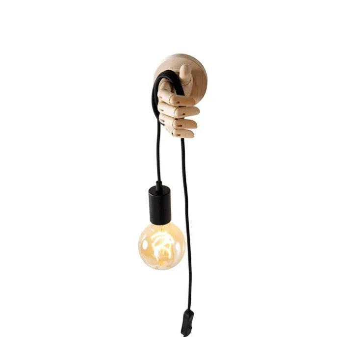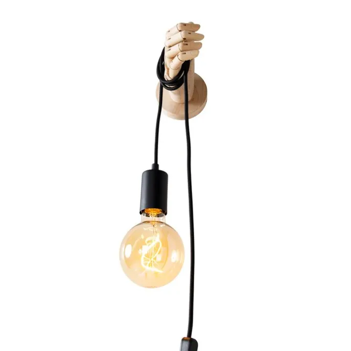 Landelijke wandlamp hout met zwart – Hand