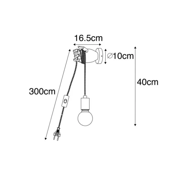 Haal een landelijke wandlamp in huis met onze Hand. Deze wandlamp is gemaakt voor hout en is afgewerkt in een bruine kleur. Zoals de naam al doet vermoeden heeft de lamp de vorm van een hand. Hij heeft een diepte van 16.5 cm, een hoogtevan 40 cm en een lengte van 10 cm. De montageplaat heeft een diepte van 2,5 cm en een diameter van 10 cm. Het snoer heeft een lengte van 300 cm. De benodigde E27 lichtbron zit er nog niet bij, maar deze kan gemakkelijk meebesteld worden in onze webshop. Maak het nog gezelliger in huis met een externe dimmer, deze lamp is namelijk dimbaar (dimmer niet inbegrepen). Geef je interieur een landelijk touch met deze Hand wandlamp!
