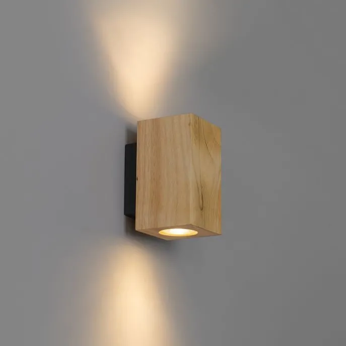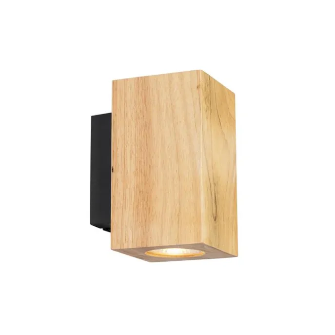 Landelijke wandlamp hout vierkant 2-lichts – Sandy