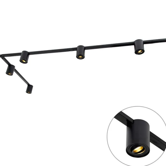 Modern 1-fase railsysteem met 5 spots zwart – Rondoo Up