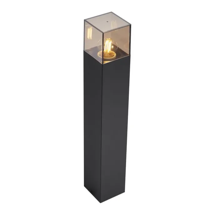 Modern buiten paaltje zwart met smoke glas 50cm met schemersensor IP44 – Denmark