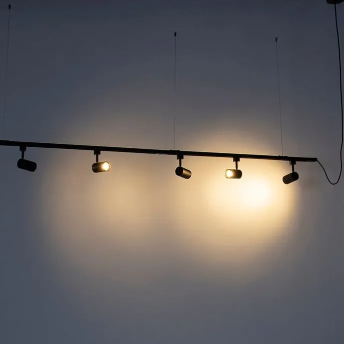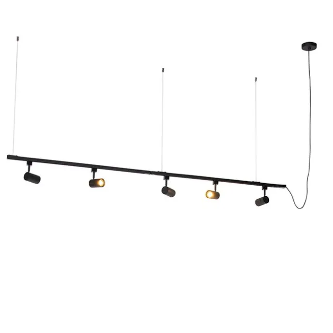 Modern hangend railsysteem met 5 spots zwart 1-fase- Iconic Jeana