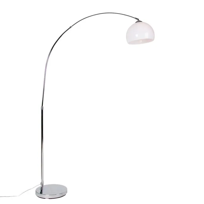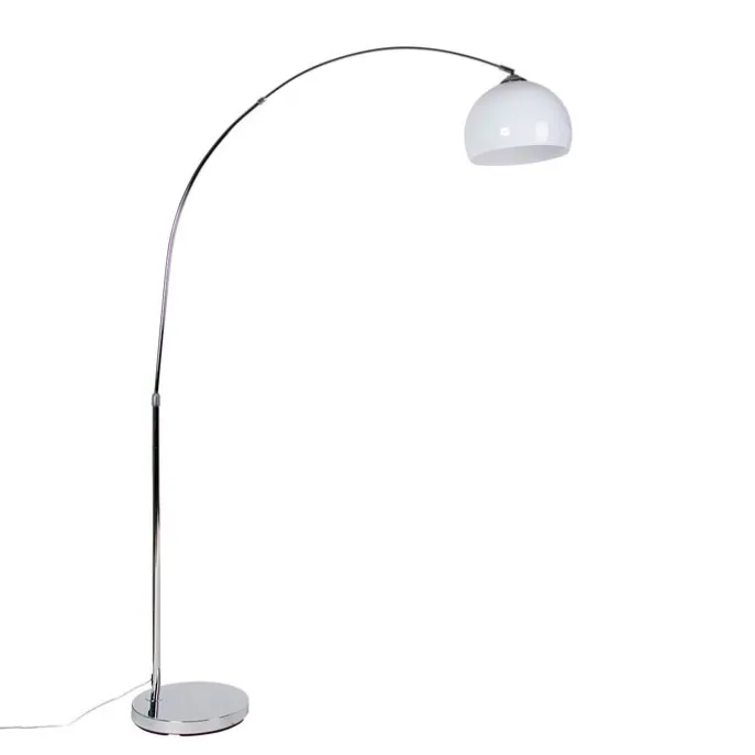 Deze moderne vloerlamp Arc Basic is een echte sfeermaker binnen jouw interieur! Het is een tijdloze booglamp met een opaal witte plexiglas kap. Een booglamp zorgt voor zowel functioneel als sfeerlicht in de woonkamer. Deze lamp heeft een totale hoogte van 176 cm en een lengte van 120 cm. De kap heeft een hoogte van 21 cm en een diameter van 29 cm. De boog is op twee plaatsen verstelbaar, zo bepaal je zelf de hoogte en overspanning.De lamp wordt exclusief lichtbron geleverd. Met een lichtbron met een E27 fitting (max. 20 Watt) maak je je booglamp helemaal compleet. De lamp is tevens dimbaar met een externe dimmer. Zorg voor een aangename sfeer met de booglamp Arc Basic!