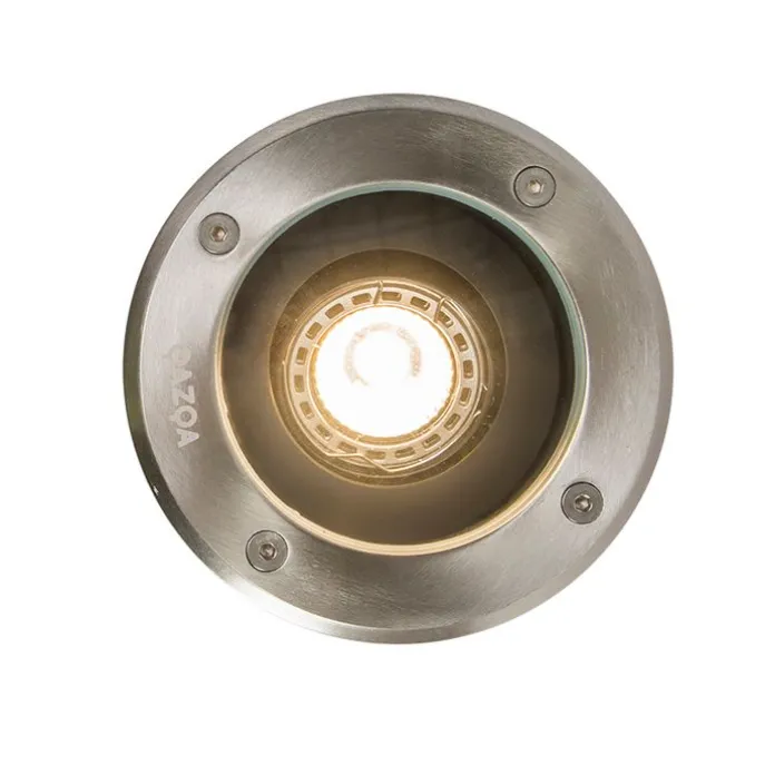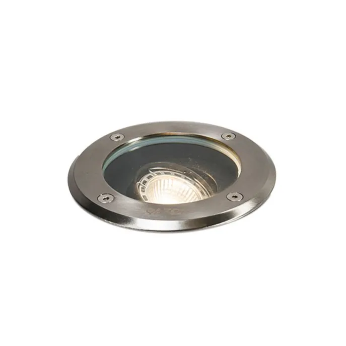 Mooie grondinbouwspot van goede kwaliteit met zware RVS afdekring. Deze grondspot is voorzien van een kantelbare binnenkant waardoor het licht vanuit de grond gericht kan worden. De lamp is dimbaar met externe dimmer (dimmer niet inbegrepen). De lamp heeft een diameter van 13 cm. De inbouwmaten van deze spot: een diameter van 12,6 cm en een diepte van 14,5 cm. De spot wordt geleverd met een kabel van ca. 30 cm, deze dient waterdicht verbonden te worden met de grondkabel. De spot is tevens overrijdbaar (je kan er met de auto overheen rijden). Je maakt de lamp helemaal compleet met een GU10 lichtbron met een Wattage van max. 50. Deze lichtbron is nog apart bij te bestellen. Delux is spuitwaterdicht waardoor het de perfecte lamp is voor buitenshuis.