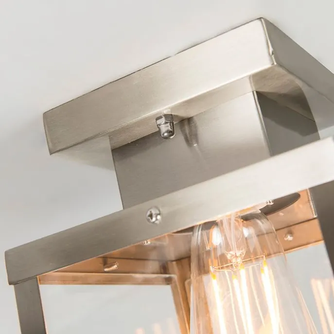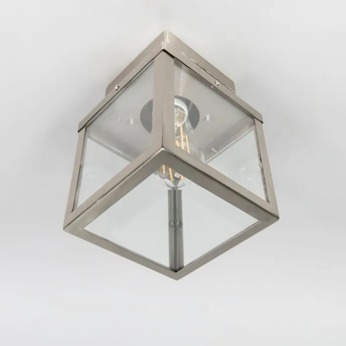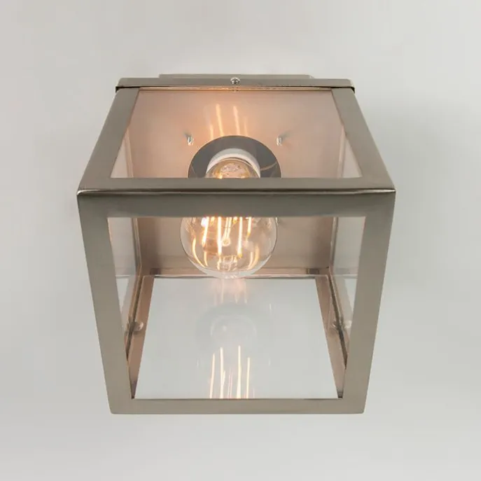 Deze Rotterdam buitenplafondlamp bestaat uit een vierkant frame voorzien van glazen panelen aan de zijkanten. Hierdoor komt er een mooi strijkeffect op de buitenmuur. Daarom is het belangrijk dat je kiest voor een bijzondere lichtbron, omdat deze zichtbaar is! Kies voor een lichtbron passend in een E27 fitting (max. 60 Watt). De lamp is tevens dimbaar met een externe dimmer (dimmer niet inbegrepen). De Rotterdam is gemaakt van RVS en beschikt over een IP-waarde van IP23: hij is dus bestendig tegen vocht maar niet tegen directe regen! Deze plafondlamp hangt mooi onder een overkapping of in de tuin bij jouw tuinhuis! De lamp heeft een lengte van 16 cm, een hoogte van 22,5 cm en een breedte van 16 cm. Creëer een gezellige sfeer in de tuin met de Rotterdam!