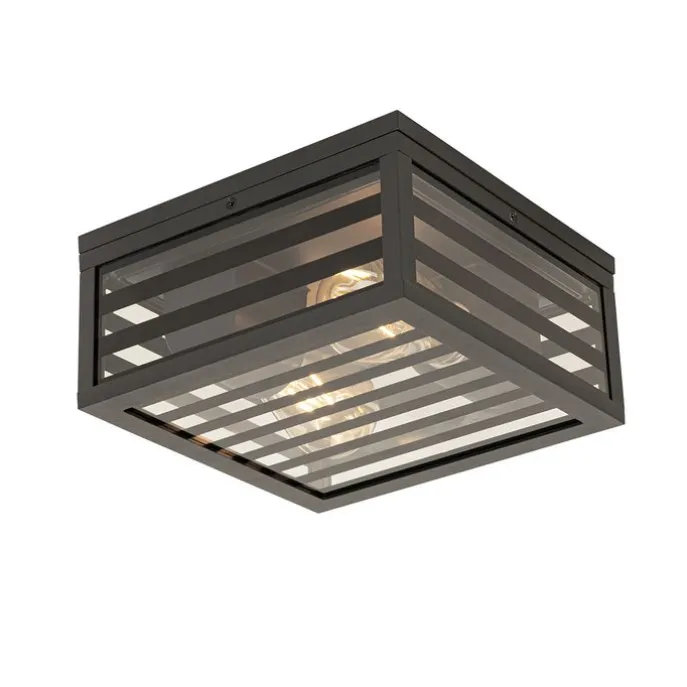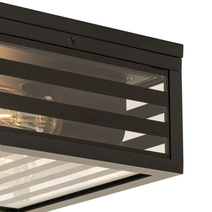 Moderne buiten plafondlamp zwart glas 2-lichts IP44 – Reims