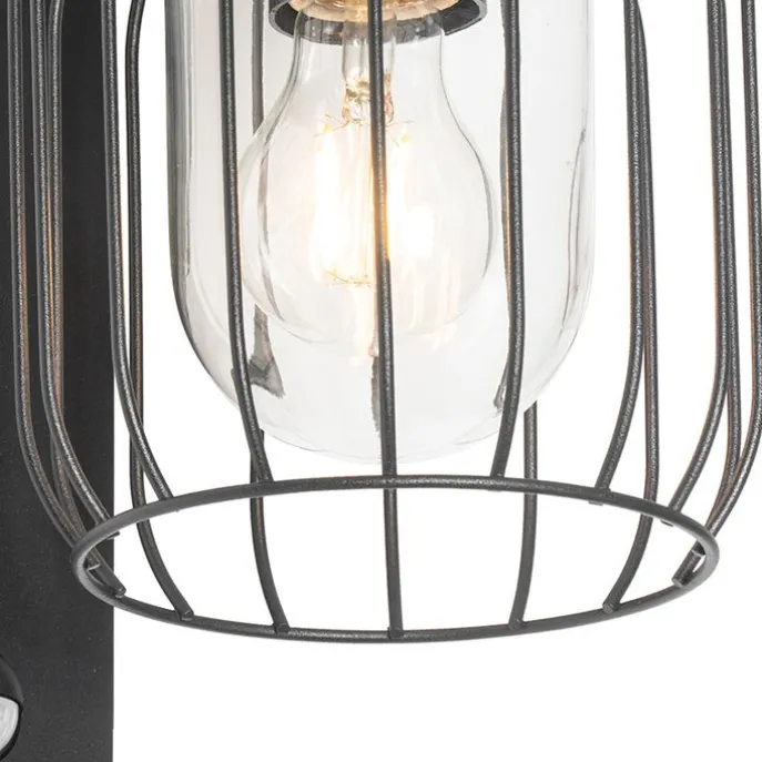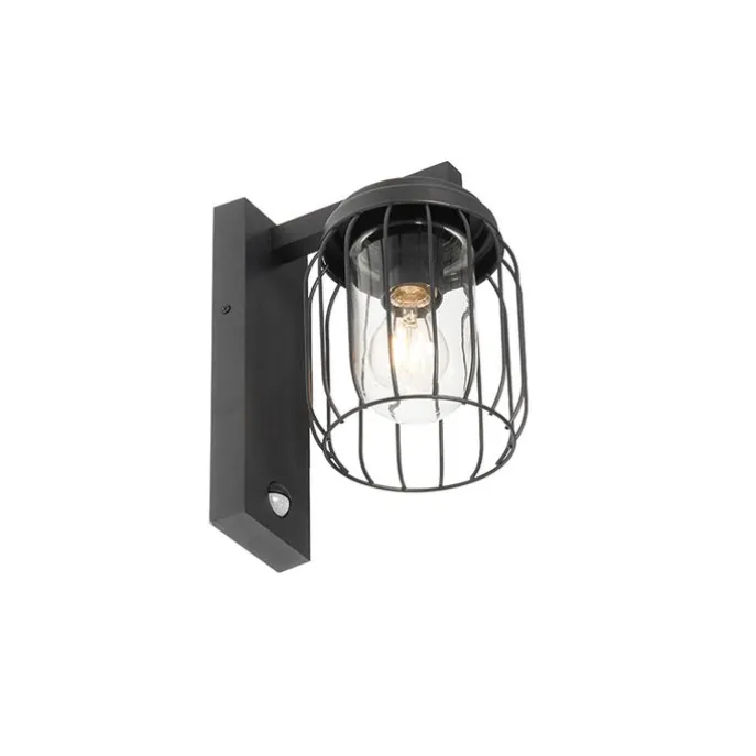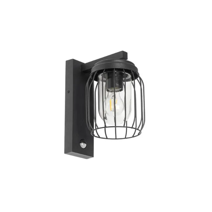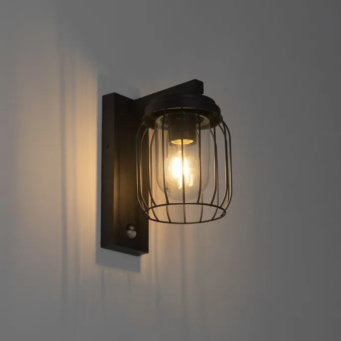 Moderne buiten wandlamp zwart IP44 met bewegingssensor – Luc