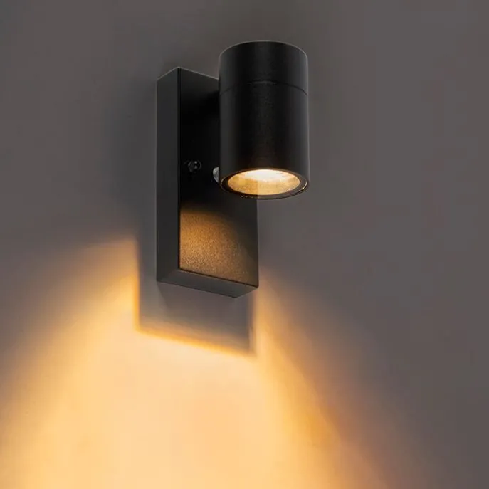 Moderne buiten wandlamp zwart IP44 met schemersensor – Solo