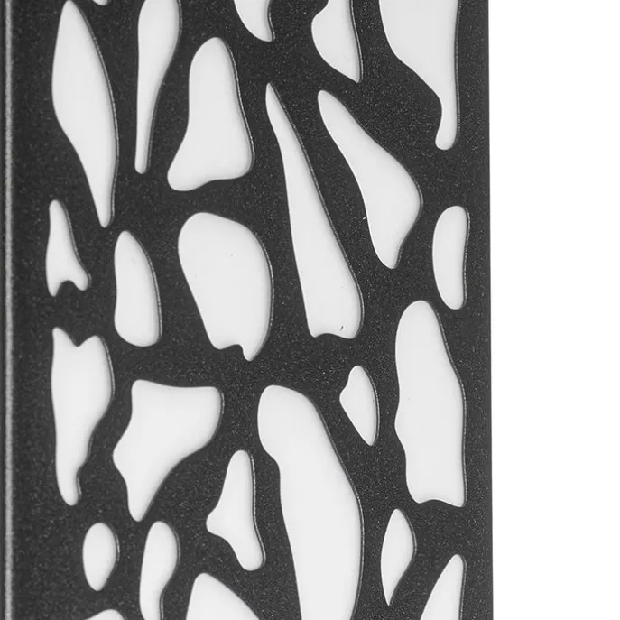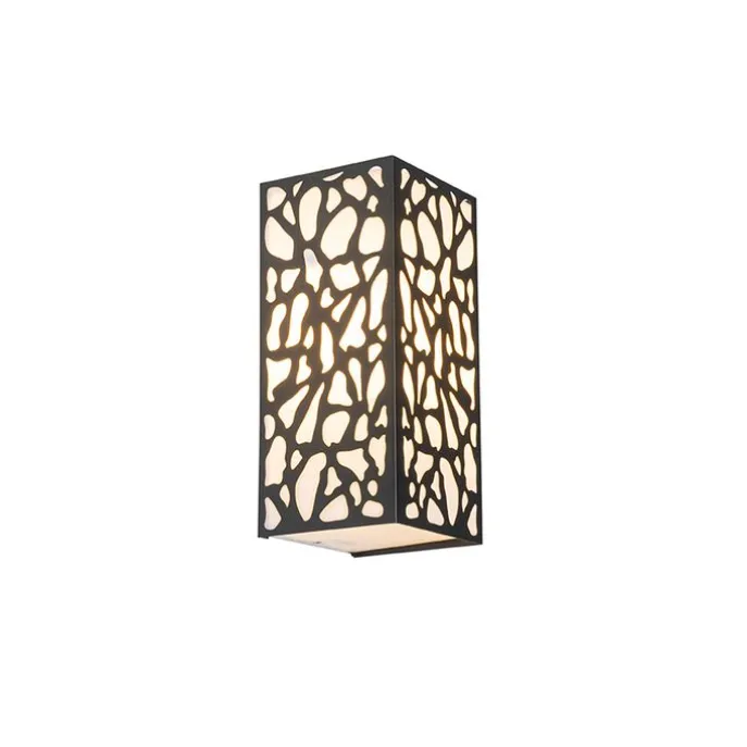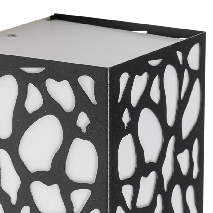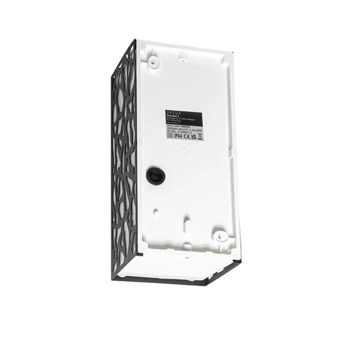 Deze opvallende buiten wandlamp zorgt voor een prachtige lichteffect door het gevlekte patroon. De lamp is gemaakt van kunststof met aluminium en is afgewerkt in het zwart. Hij heeft een diepte van 11,6 cm, hoogte van 26 cm en lengte van 12,4 cm. Je maakt de wandlamp af met een lichtbron met E27 fitting (max. 20 Watt). Zorg dat je deze er nog los bij besteld. Met een externe dimmer is de wandlamp dimbaar, deze is niet inbegrepen. Door zijn IP-waarde van IP44 is de wandlamp spatwaterdicht, perfect voor beschutte plekken zoals naast de voordeur of onder de overkapping. Zorg voor goede verlichting rondom jouw huis met wandlamp Nicole.