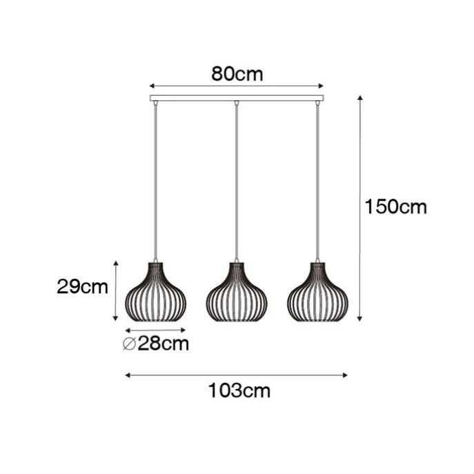 Een mooie toevoeging in je interieur, onze Saffira hanglamp! Mooi afgewerkt in een tijdloze bruine kleur met 3 open lampenkappen: de open kappen zorgen voor een speels lichteffect. De Saffira is een blikvanger boven de eettafel. De lamp is verstelbaar in hoogte: minimaal 61,5 cm en maximaal 150 cm; op die manier bepaal je de perfecte hoogte boven je eettafel. De kappen hebben een diameter van 28 cm. De montageplaat heeft een lengte van 80 cm. Zorg voor gezellige verlichting! Bestel daarom nog 3 E27 lichtbronnen bij van max. 60 Watt. Ga voor de gezelligheid van onze Saffira in huis!