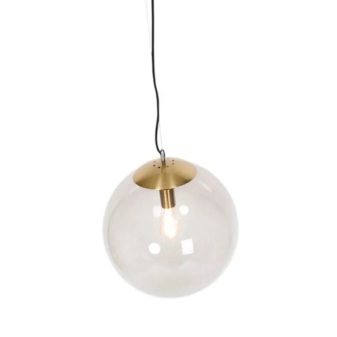 Moderne hanglamp messing met smoke glas 40 cm – Ball