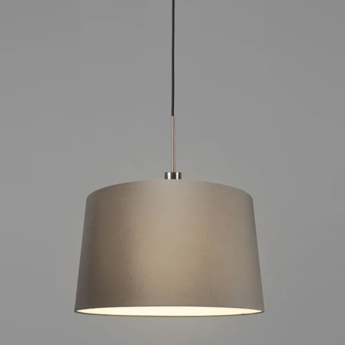 Moderne hanglamp staal en zwart met kap 45 cm taupe – Combi