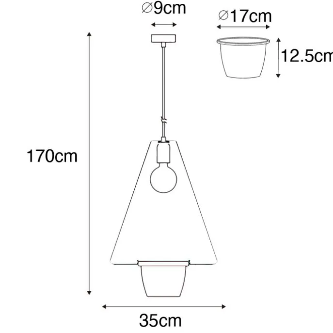 Heb je geen plaats meer voor leuke planten in je interieur? Dan is Roslini de oplossing! Deze leuke driehoekige hanglamp komt inclusief bloempot. Zo haal je toch jouw favoriete plant in huis. De hanglamp is gemaakt van staal met glas en is afgewerkt in het zwart. Hij heeft een lengte van 35 cm, breedte van 17 cm en is verstelbaar in hoogte; minimaal 85 cm en maximaal 170 cm. De glazen bloempot heeft een diameter van 17 cm en een hoogte van 12,5 cm. De montageplaat heeft een diameter van 9 cm en een hoogte van 2,5 cm. Het snoer heeft een lengte van 115 cm. Maak Roslini af met een lichtbron met E27 fitting (max. 40 Watt). Vergeet deze er niet nog los bij te bestellen. De hanglamp is dimbaar met een externe dimmer, deze is niet inbegrepen. Maak het een stukje groener en moderner in jouw woonkamer, werkkamer of eetkamer met hanglamp Roslini!
