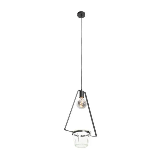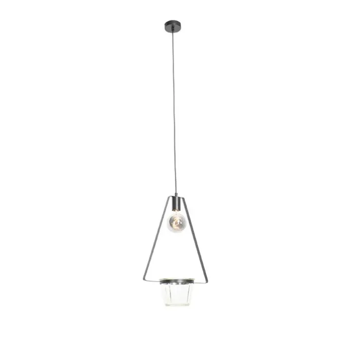 Moderne hanglamp zwart met glas driehoekig – Roslini