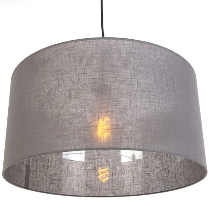 Moderne hanglamp zwart met grijze kap 50 cm – Combi 1