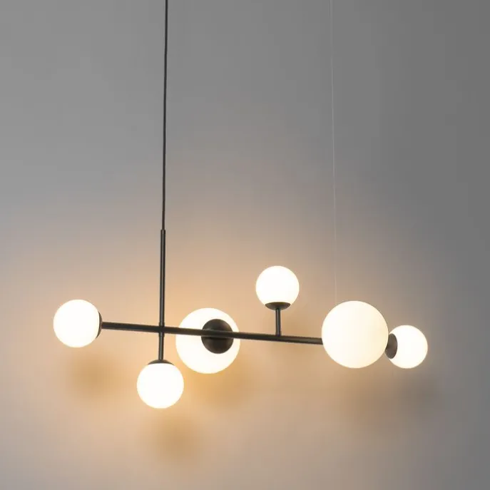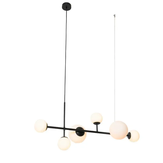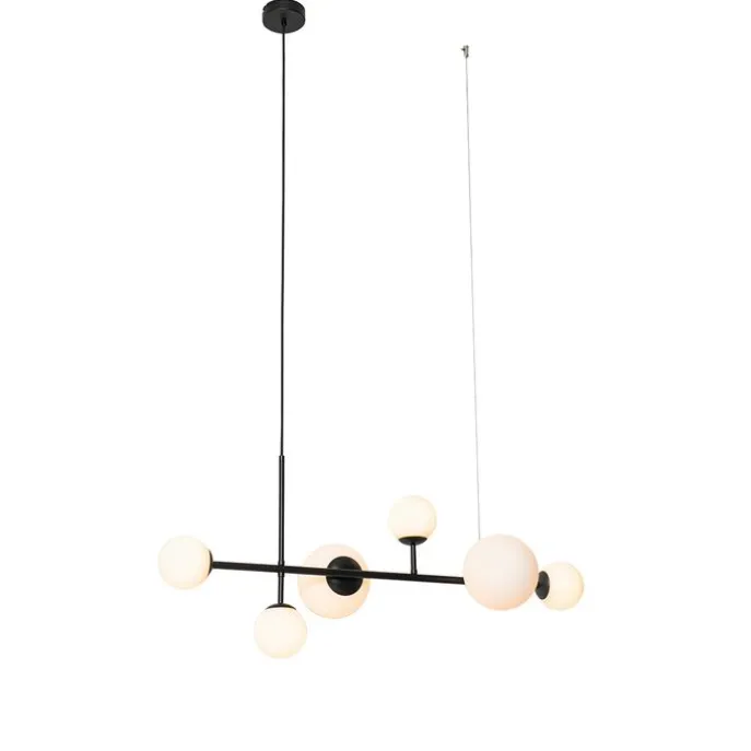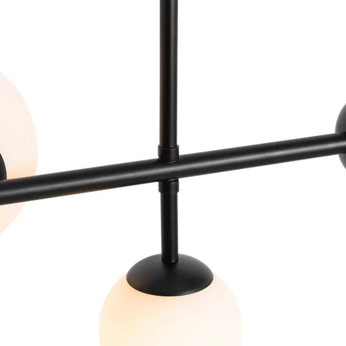 Moderne hanglamp zwart met mat glas 6-lichts – Monaco