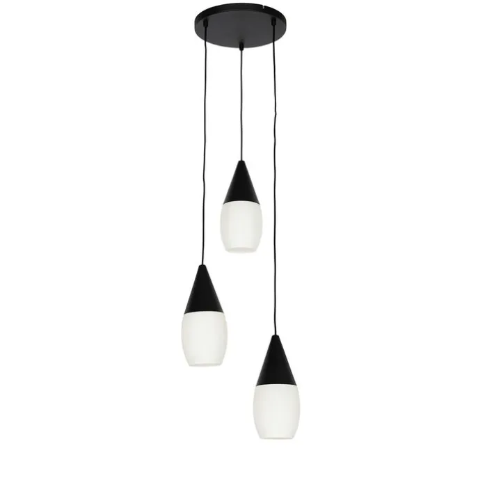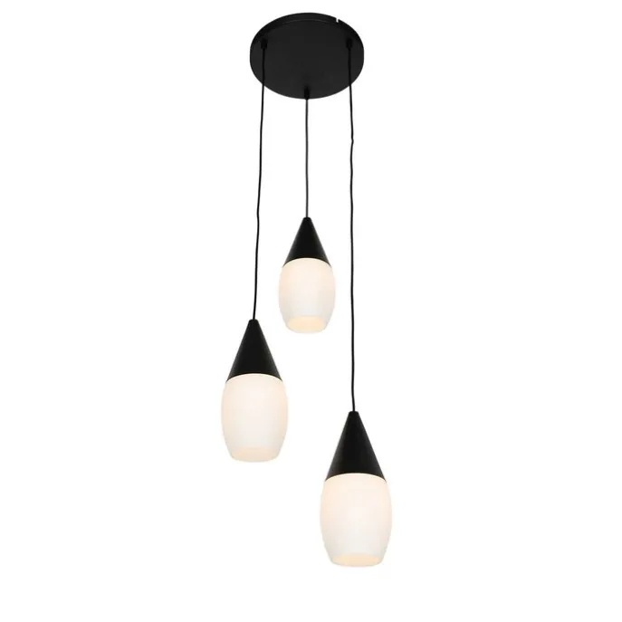 Moderne hanglamp zwart met opaal glas 3-lichts – Drop
