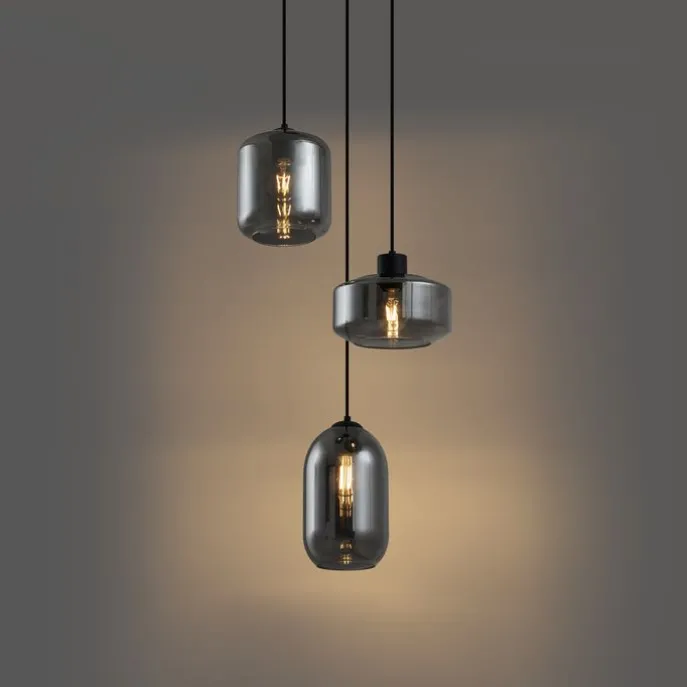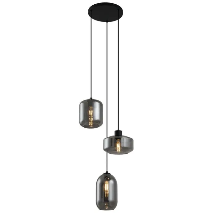 Moderne hanglamp zwart met smoke glas 3-lichts – Sheena