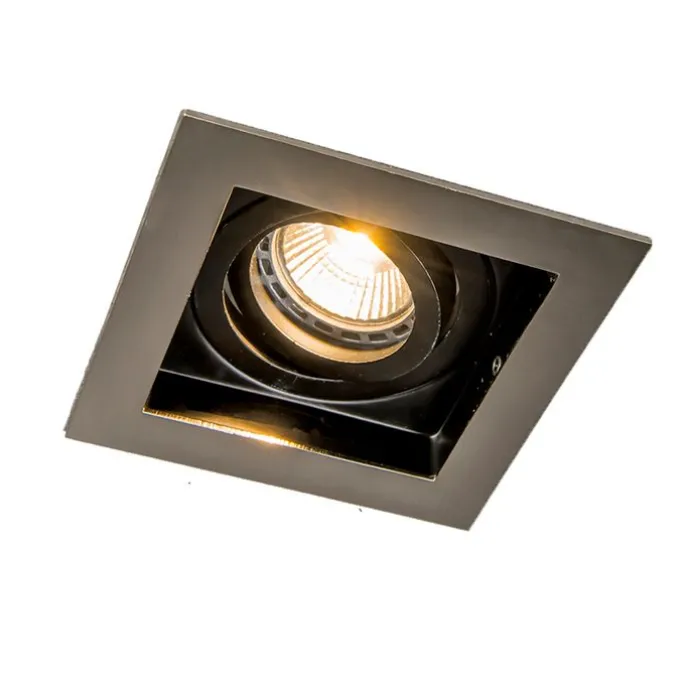 Moderne inbouwspot staal met zwart draai- en kantelbaar – Carree